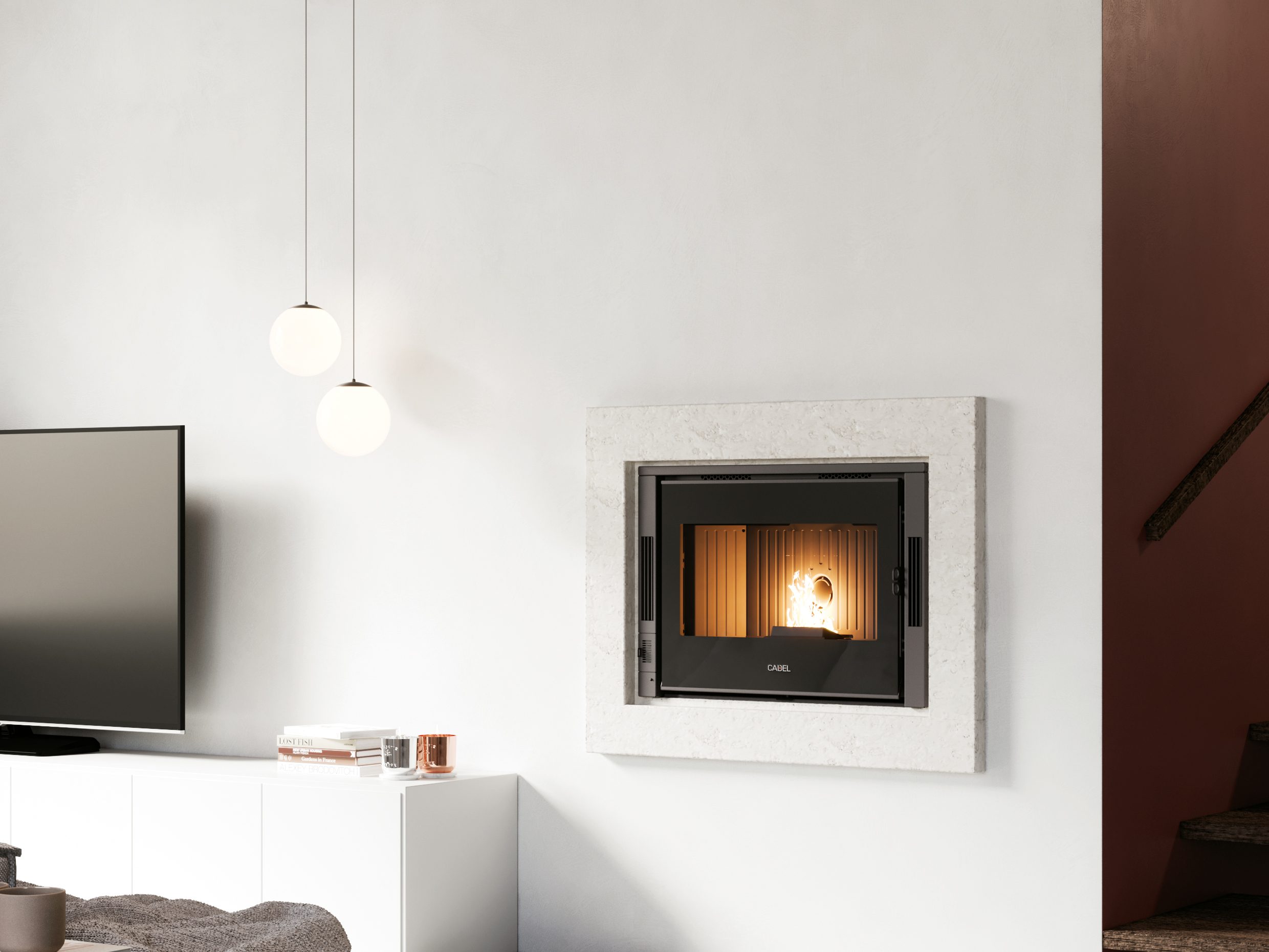 L’inserto a pellet si integra perfettamente nei camini aperti.